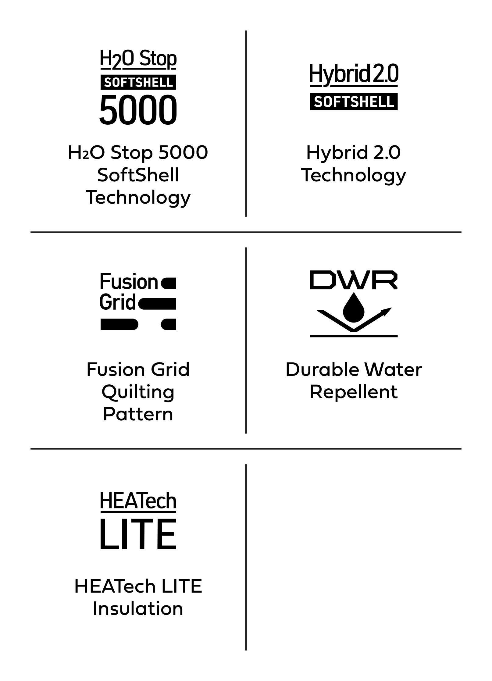 Step into advanced performance with the Halo Hybrid Jacket — where cutting-edge design meets premium protection. Featuring a wind-resistant, glued quilted body and H2OStop 5000mm softshell sleeves with DWR finish, this technical layer offers versatile comfort and a sleek, athletic silhouette for every season.
